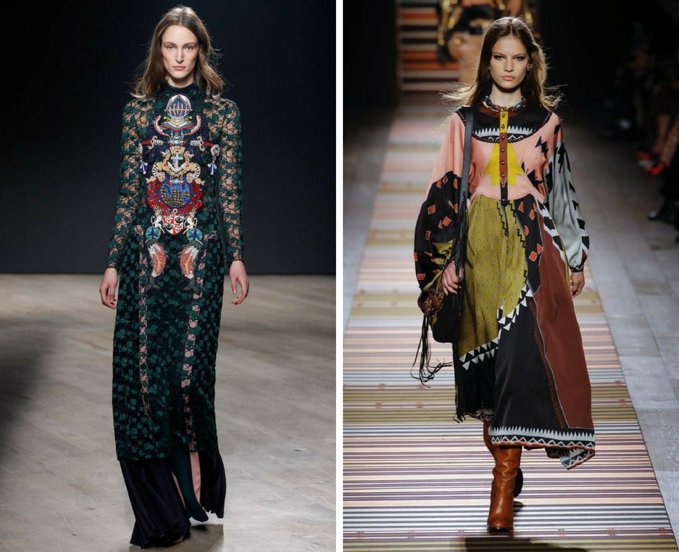 In acest sezon se poarta imprimeurile etnice, inspirate din culturile popoarelor, cum ar fi cele aztece si tribale, prezente pe podium, nu numai in ceea ce priveste broderiile, ci si desenele. Acest gen de imprimeu a evoluat catre o gama eleganta, eminamente feminina si urbana. Vorbim despre influentele tribale africane, motivele sud americane, cu preponderenta maya. Minutioase si cu foarte multe detalii, ele avantajeaza orice forma a corpului. Poarta-le in partea de sus, asortate cu fuste simple, in culori care se regasesc si in imprimeu.