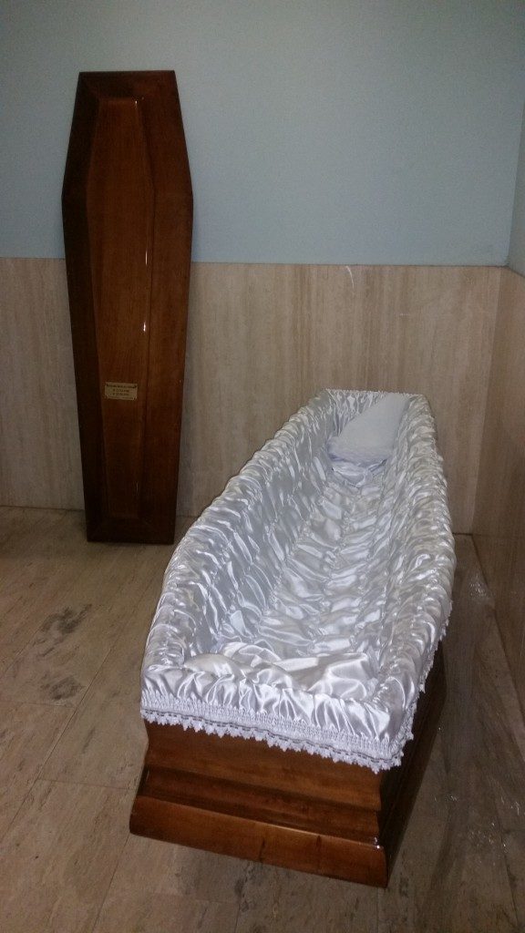 - sicriele obligatorii in care se face repatrierea nu se gasesc peste tot, ci numai firmele de pompe funebre le poseda. Decedatul este asezat mai intai in sicriul de zinc, prevazut cu valvule, apoi cel de zinc este asezar in cel din lemn de esenta tare.