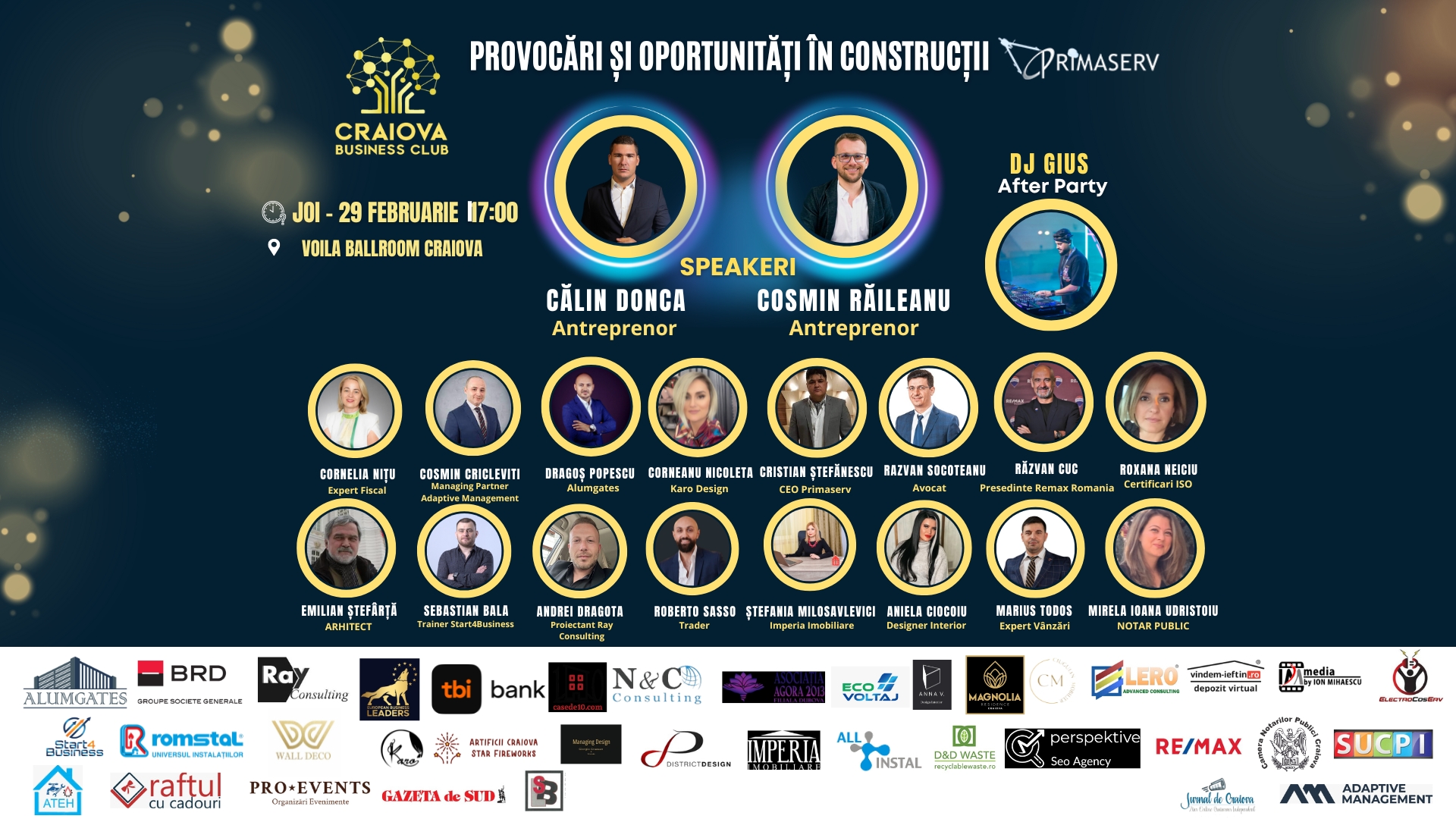 Craiova Business Club și Primaserv sunt încântați să vă invite la cea de-a treia ediție a acestui eveniment de succes, care a devenit deja o tradiție!