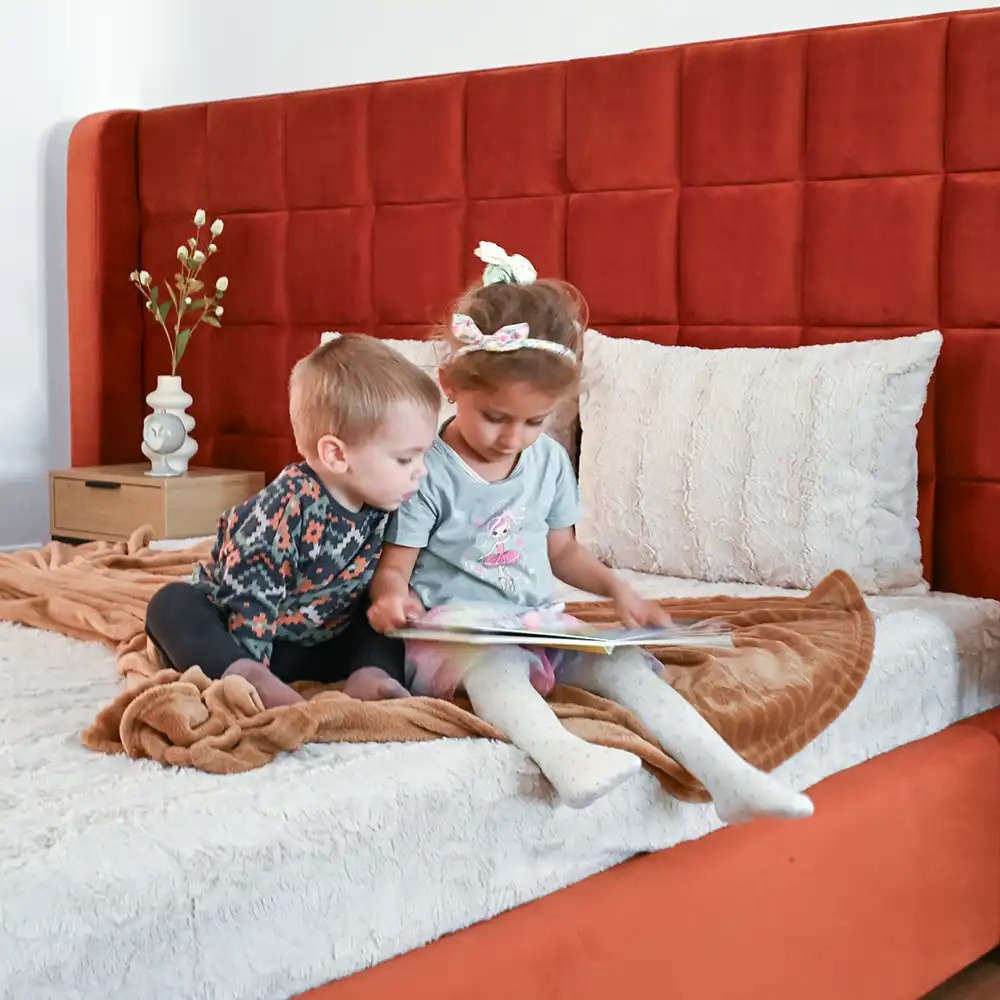 Pentru copii cu vârste între 0 și 12 ani, se recomandă salteaua PUR ECO de 20 cm, cu elasticitate mare, reziliență ridicată și duritate mică spre medie.